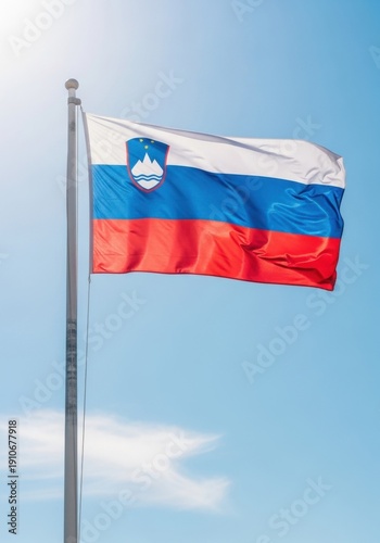 Slovenian Flag Waving in Clear Daylight