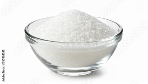 Small bowl filled with white sugar – isolated kitchen ingredient for culinary use