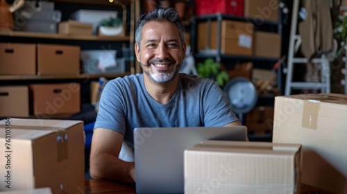 warehouse, laptop, small business, business, person, businessman, online shopping, entrepreneur, delivery, man, male, mature, latin, hispanic, selling, owner, employee, shipping, computer, online, logistic, shipment, working, merchandise, occupation, order, product, professional, store, adult, cardboard box, distribution, cyberspace, retail, service, storage, happy, e-business, shop, stock, e-business, company, good, storehouse, success