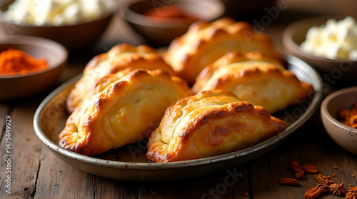 cheese, pie, pastry, savoury, food, snack, baking, tray, metal, spice, herb, wooden, table, rustic, traditional, homemade, delicious, cookery, fresh, gold, crust, baked, kitchen, meal, plate, cook, tasty, epicure, flaky, oven, ingredient, favor, warm, aroma, bakery, brunch, buffet, crispy, finger food, culinary, bread, dough, treat, serving