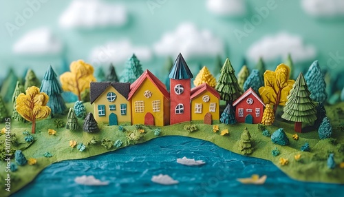 Small Colorful Houses by a Lake