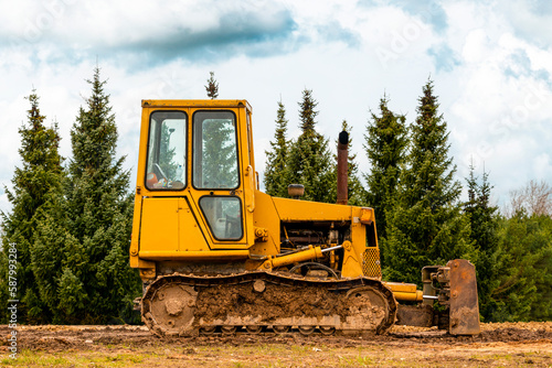 Small crawler bulldozer left on the construction site