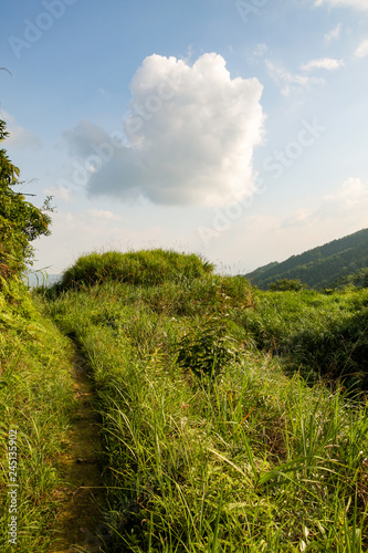 pathway, cloud, path, grass, hiking, landscape, china, travel, vegetation, walk, asia, day, empty, forest, hill, nature, outdoors, park, plant, rural, small, summer