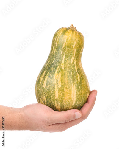 small green pumpkin in hand