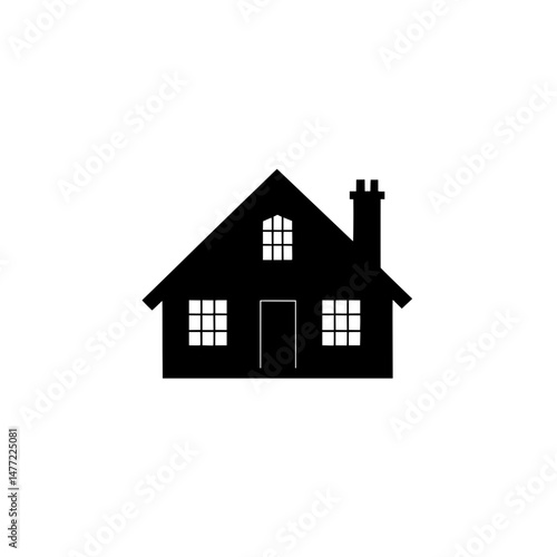Small house icon in black silhouette with chimney and window arrangement, suitable for real estate symbols