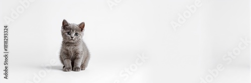 Small kitten isolated on white background, emphasizing simplicity and purity