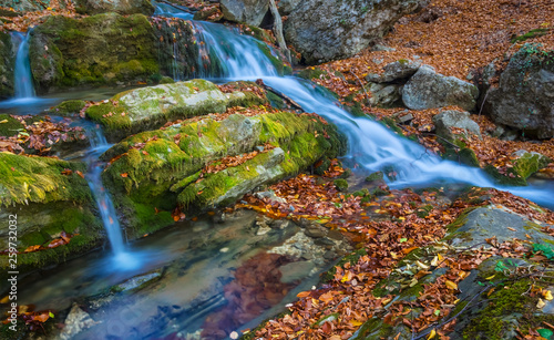 small mountain brook rushing over the stones