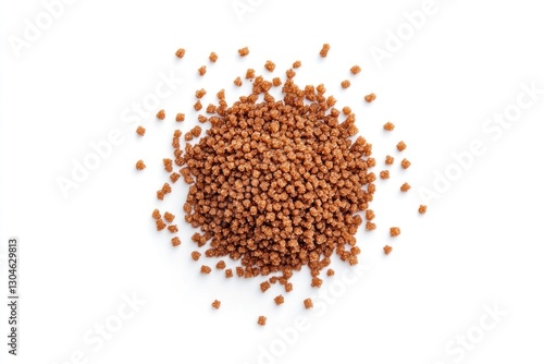 cereal, brown, food, grain, breakfast, healthy, nourishment, diet, snack, energy, organic, natural, whole, ingredient, cooking, baking, texture, crispy, crunchy, sweet, delicious, tasty, flake, bit, piece, granule, powder, small, pile, heap, mound, scattered, isolated, background, white, studio, photo, top, view, overhead, macro, closeup, detail, colours, tone, shade, hue, appetising