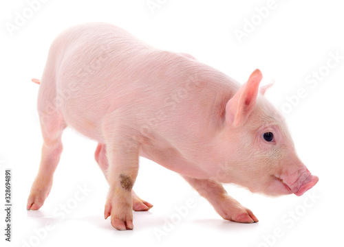 Small pink pig isolated.