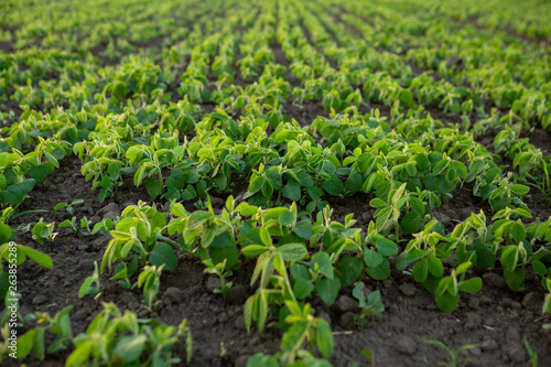 Small soybean plants on nature
