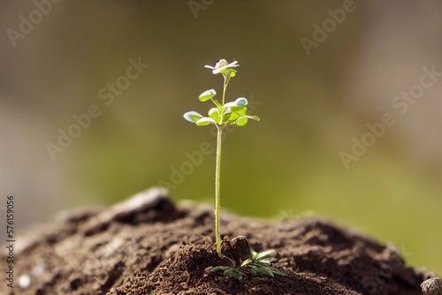 small sprouting green plant from dark soil, generative AI