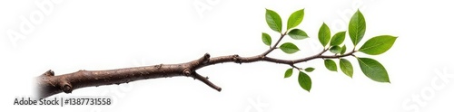 small tree branch with bark isolated on white background, textured, rustic, tree