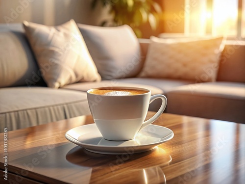 coffee mug, coffee table, saucer, home decor, kitchen utensile, beverage, cosy, elegant, modern, tabletop, lifestyle, inviting, stylish, interior design, photo, simplicity, chic, cup, crockery, rustic, casual attire, comfort, porcelain, afternoon tea, relaxing, decorative, artful, aesthetic, scene, coffee break, table setting, ceramic