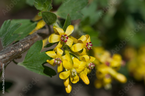 small yellow flowers on a branch (probably berry)