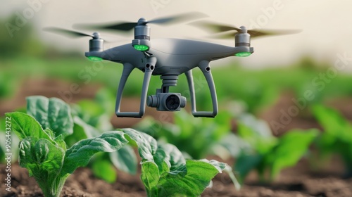 Smart agriculture with drone monitoring, representing tech-driven farming.