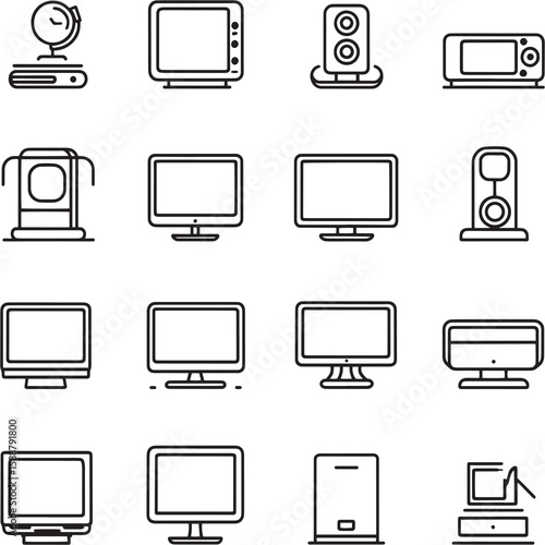 icon, computer, laptop, vector, set, monitor, phone, icon, technology, mobile, device, screen, tablet, illustration, television, symbol, electronic, cyberspace, design, web, camera, media, equipment, television