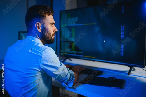 office, male, programmer, night, portrait, network, modern, man, job, people, cyberspace, occupation, software, programming, support, datum, technology, cyber, computer, web, code, website, work, digital, business, table, profession, person, online, virtual, project, career, information technology, engineering, command, company, developer, late, program, young, workplace, dark, overwork, employee, evening, guy, information, deadline