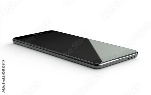 Smartphone: A modern smartphone with a blank screen and sleek design, placed flat on a white background