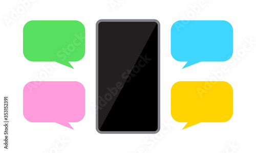 smartphone and speech bubble, chat concept, dialog box for copy space message, smartphone with bubbles speech for messaging dialog, chatting with chat bot robot on cellphone, messaging bubbles flat