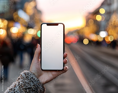 smartphone, hand-held, city, light, blurred, background, empty, screen, display, urban, evening, hand, holding, image, technology, modern, device, vertical, photo, picture, mobile, digital, communication, outdoors, people, bokeh, street, night, fashion, cosy, clothing, winter, season, sharpened, blank, showcase, product, presentation, template, illustration, concept, trendy