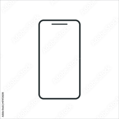 Smartphone line outline style vector illustration, simple mobile phone sketch line art icon isolated on white background.