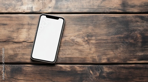 Smartphone Mockup on Rustic Wooden Table with Copy Space for Design