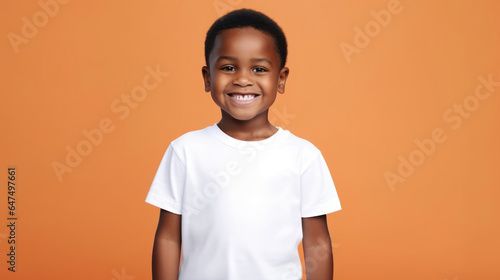 Smile African man fit in Frame wearing bella canvas white shirt mockup, isolated color background
