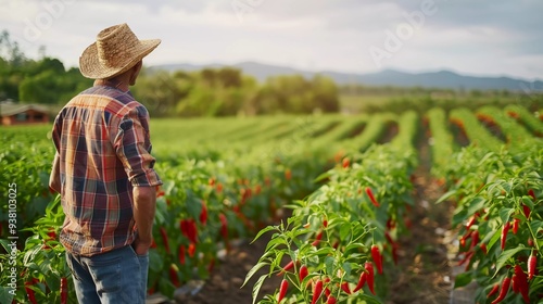 smile chili farmer in a large chili field nature photography