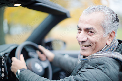 smile, affection, senior, man, car, active, adult, autumn, bonding, carefree, caucasian, connection, day, enjoy, front view, grey, hair, happy, head shot, husband, lifestyle, middle eastern, outdoors, park, people, public, retirement, well-being, 1