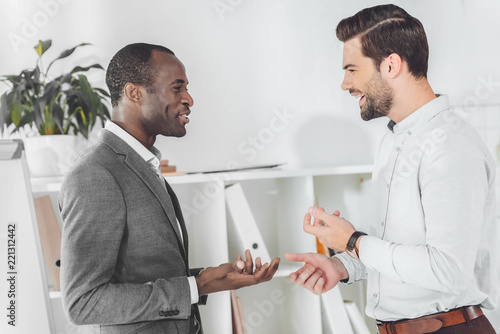 happy, business, signs, smiling, people, happiness, cheerful, caucasian, smile, male, man, symbol, office, working, talking, work, indoor, profession, attractive, photogenic, teamwork, workplace, workspace, gesture, gesticulate, businessman, cooperation, colleague, co-worker, multicultural, professional occupation, selective focus, young adult, african american, black man
