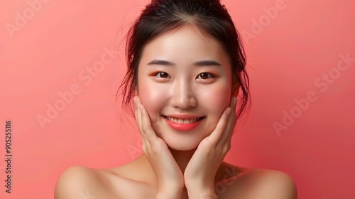 woman, asian, smile, face, portrait, pink, background, beauty, skin, happy, model, female, studio, fashion, make-up, hair, eye, teeth, lip, head, shoulder, 1, person, young, adult