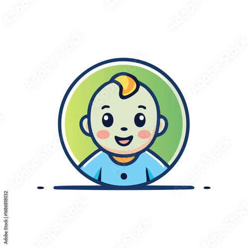 Smiling Baby Cartoon Character Illustration in a Blue Circle Frame with Green Gradient