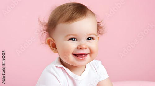 smiling baby on pink background