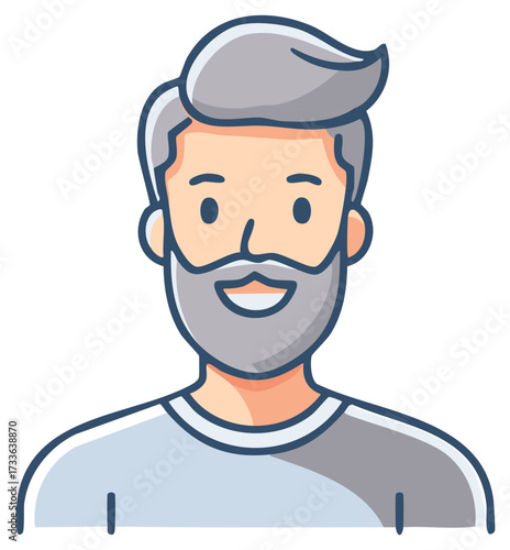 Smiling Bearded Man with Grey Hair Character Illustration Avatar Icon