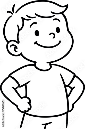 boy, children, cartoon, drawing, illustration, outline, black, and, white, smiling, happy, confident, standing, pose, children