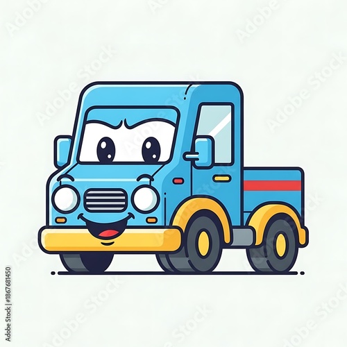 Smiling cartoon truck with big eyes.