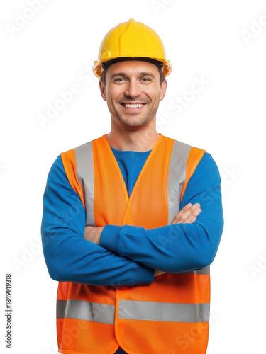 Smiling construction worker isolated on transparent background