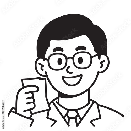 doctor, illustration, smiling, happy, paper, holding, medicals, health, cartoon, graphic, vector, clip art, icon, professional, friendly, man, goggles, white coat, health care, medicine, patient, care, treatment, hospital, clinic, website, blog, design, element, image, drawing, vignetting, art, cute, cheerful, positive