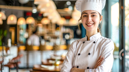 smiling, eatery, professional, kitchen, culinary, food, modern, stylish, confident, cookery, culinary arts, gastronomy, food preparation, hospitality, fine dining