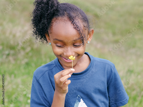 girl, children, elementary, mixed race, alone, flower, childhood, exploration, adventure, nature, summer, active, lifestyle, happiness, fun, curiosity, brunette, gem, outdoors, day, smell, hold, front, innocence, britain, 1, people