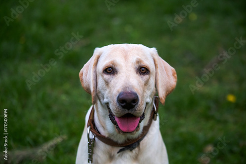 Smiling Labrador Retriever, also Labrador, labradorite for a walk closed his eyes.