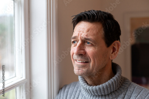 portrait, posing, people, human, human, human being, person, adult, grown-up, man, mature, man, half-length, waist up, 1, one person, horizontal, pane, window, window glass, windowpane, indoor, indoor, inside, day, daylight, daylight, daytime, looking away, front view, brown hair, brunette, dark hair, dark-haired, short hair, smiling, toothy smile, optimism, positive