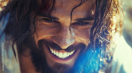 man, face, smile, hair, long, portrait, eye, beard, teeth, closeup, close, up, human, male, person, look, expression, joy, happiness, confident, happy, photogenic, attractive, gentleman, young, adult, skin, brow, eyebrow, cheek, mouth, nose, chin, white, bright, sunlight, light, shadow, sharpened, blur, sharp, clear, detailed, photo, photo