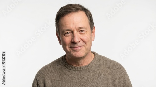 man, smiling, portrait, middle, aged, adult, face, head, person, human, expression, smile, eye, skin, feature, casual attire, sweater, clothing, studio, light, background, white, simple, clean, minimal, 1, single, solo, male, people, humanity, character, countenance, visage, grown, up, senior, elder, mature, smirking, glad, cheerful, delighted, joyful, pleased, gentle, kind, frontal, view