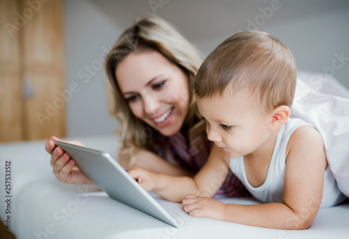 home, tablet, computer, morning, positive, pajama, leisure, online, blond, connection, cyberspace, wireless