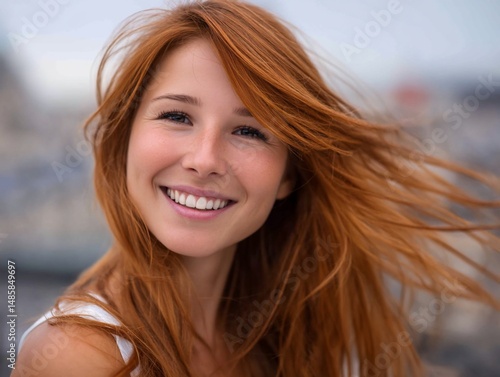 woman, redhead, smile, happy, beauty, portrait, face, hair, long, girl, attractive, pretty, beautiful, young, caucasian, model, fashion, style, photo, picture, glamour, charming, joyful, confident, cheerful, expression, emotion, natural, breeze, wind, casual attire, summer, light, soft, close, up, photo, smiling, teeth, white, healthy, fresh, gorgeous, feminine, woman, red, long hair