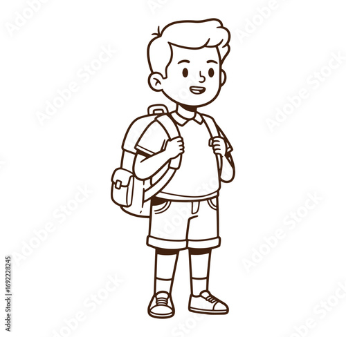 school, boy, student, children, backpack, elementary, education, learning, happy, smiling, outline, line art, drawing, cartoon, vector, graphic, illustration, back to school, pupil, young, children, cheerful, playful, isolated, white background, ready, homework, college, schoolbag, studying, minimalist