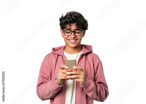 Smiling Teen With Phone on Transparent BG