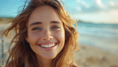 woman, beauty, smile, face, smiling, hair, teenage, summer, beach, outdoors, person, teenage, people, nature, happiness, eye, model, sky, head, joy, sea, 1, blond, outside, closeup