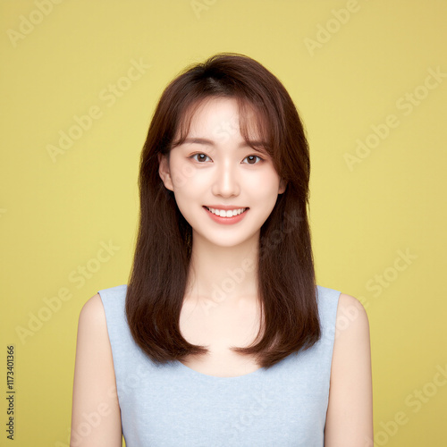 woman, smile, hair, beauty, portrait, yellow, background, positive, confidence, cheerful, long, expressive, young, adult, lighting, person, aesthetic, happiness, face, joy, friendly, charming, stylish, studio, modern, personal, warmth, lifestyle, expression, creativity, fashion, elegance, simplicity, connection, energy, youth, personality, natural, peppy, vibrant, attractive, indoor, emotion, freshness, glowing, identity, youthfulness, mood, serenity